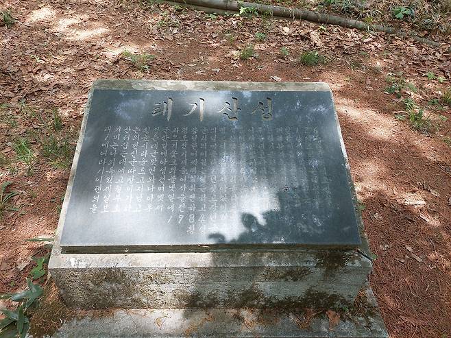 | ▲ 태기산성 표지석 태기산성은 해발 750~1000m 높이에 축조되었고, 현재 그 일부가 남아 있다. |