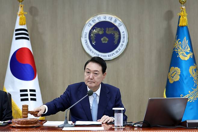 | ▲ 2022년 7월 5일 윤석열 대통령이 용산 대통령실 2층 국무회의실에서 열린 제30회 국무회의를 주재하고 있다. |
