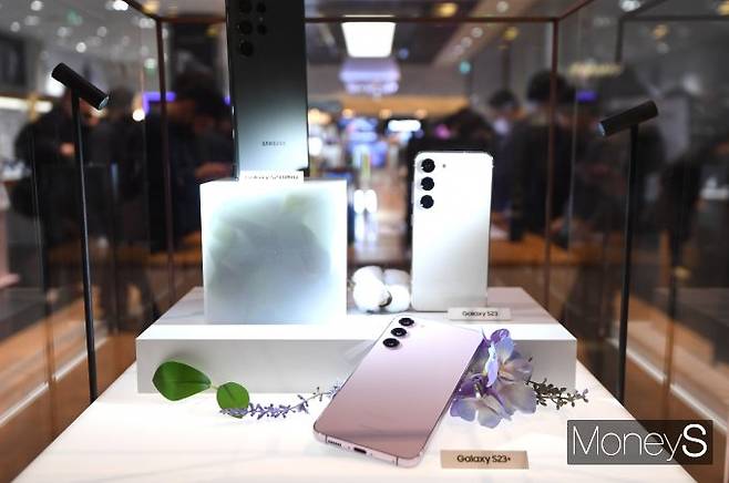 삼성전자가 미국에서 '갤럭시 언팩 2023'을 열고 갤럭시 S23 시리즈를 공개한 2일 서울 서초구 삼성전자 딜라이트샵에 갤럭시S23 시리즈가 전시돼 있다.
