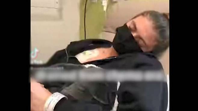 카메라 앞에서 자신의 병명을 밝히는 여성, 몸에 축구공만 한 종양이 있다며 의료 장비를 착용한 모습도 공개했습니다.