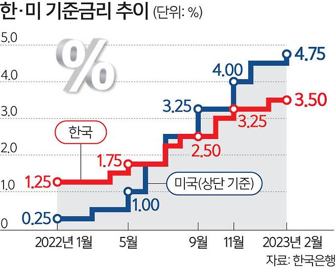 한·미 금리격차 1.25%P로 확대