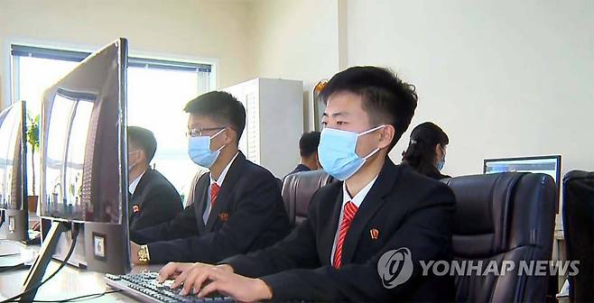 (서울=연합뉴스) 북한 대외선전매체 조선의소리는 3일 김일성종합대학 첨단기술개발원이 개술 갱신 사업을 활발히 진행하고 있다고 보도했다. 사진은 개발원의 연구진이 사용하는 컴퓨터 화면과 발표 자료 등에 모자이크 처리가 된 모습. 2023.2.3. [조선의소리 홈페이지 캡처. 재판매 및 DB 금지]