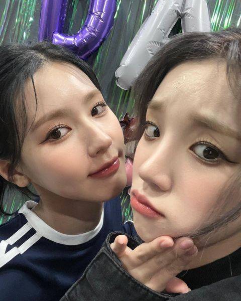 같은 (여자)아이들 멤버 우기(23)도 현장을 찾은 모습이다. 우기는 미연을 껴안은 채 입술을 쭉 내미는 귀여운 포즈로 미연을 향한 애정을 표현하고 있다. 두 사람의 각별한 우애가 느껴진다.