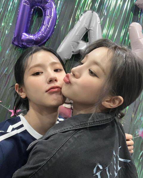 같은 (여자)아이들 멤버 우기(23)도 현장을 찾은 모습이다. 우기는 미연을 껴안은 채 입술을 쭉 내미는 귀여운 포즈로 미연을 향한 애정을 표현하고 있다. 두 사람의 각별한 우애가 느껴진다.