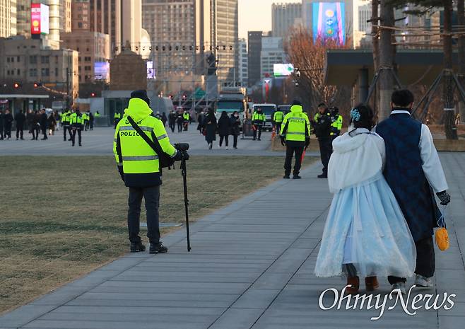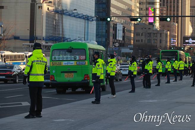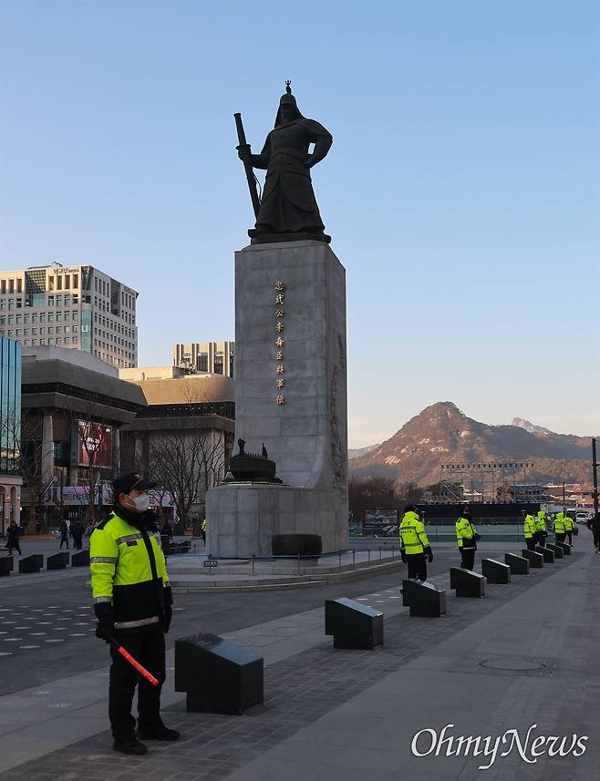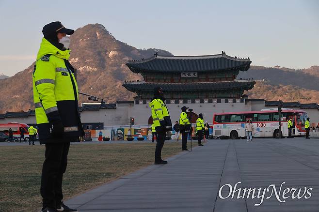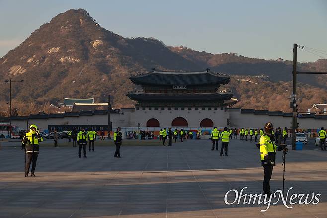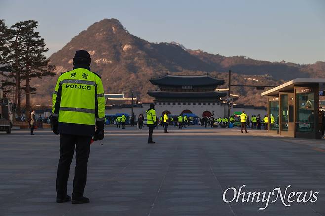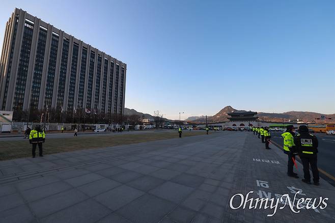 | ▲ 정부서울청사앞 광화문광장 북광장에 경찰들이 집중 배치되어 있다. |