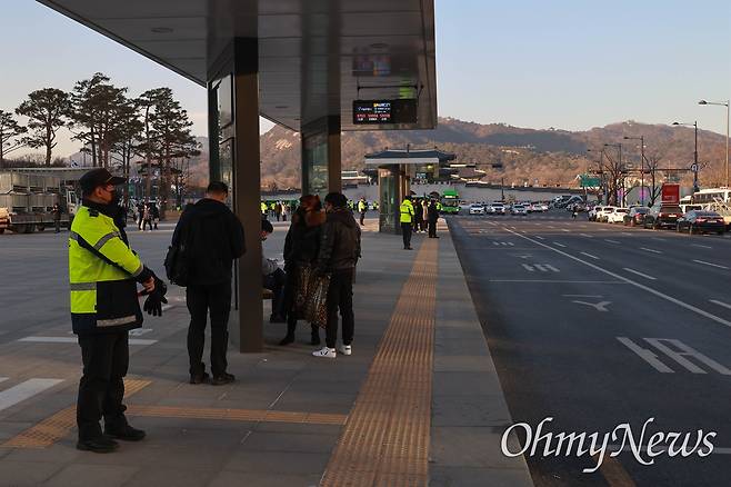 | ▲ 추운 날씨에 오래 서 있던 경찰이 몸을 풀고 있다. |