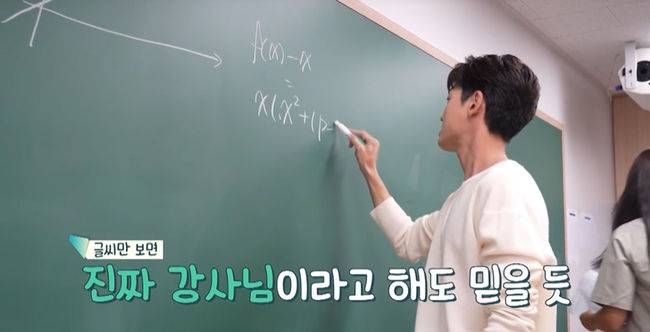 그러면서 진짜 강사라고 해도 믿을 강사포스로 연습한 수식 그대로 열강하는 모습. 학생들 박수가 흘러나오기도 했다. 판서 뿐만 아니라 어려운 대사까지 완벽하게 소화한 모습이 눈길을 끌기도 했다.
