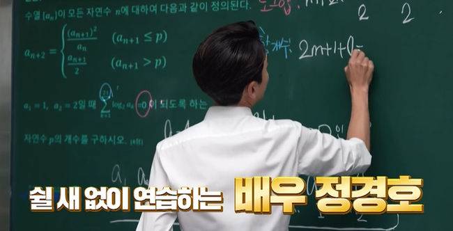 그런 그의 열정과 노력이 담긴 메이킹을 공개, 정경호는 "특별한 건 없다 처음부터 끝까지 수학이란 걸 몰라 어려웠다"면서 "잠시나마 이해해보려했지만 그냥 달달 외웠다 제일 어려웠던건 칠판글씨"라며 비화를 전했다. 그렇게 다량의 문제풀이가 있는 장면을 소화한 정경호는 강사님과 하루종일 연습해야 했다고. 대치동에서 실제 수능수학을 가르치고 있는 강사를 만났다.
