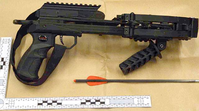 석궁은 화살이 장전되고 안전장치가 풀린 상태였습니다.
