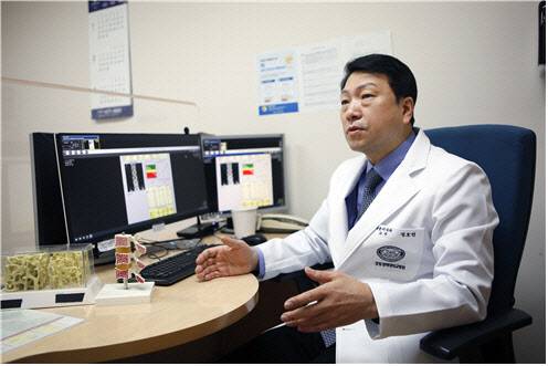 [이데일리 이순용 기자] 골다공증은 증상을 전혀 느낄 수 없는 대표적인 질환 중 하나다. 서서히 아무 증상도 없이 뼈의 조직이 약해지다가 어느순간 골절로 병원을 찾게 된다. 증상이 없고 약을 먹어도 효과를 확인하기 어려우니 대수롭지 않게 여기기 쉽다. 하지만 골다공증으로 인한 골절은 재발되는 경우도 많고, 노년기 골절은 생명까지 위협할 수 있기 때문에 평소 예방과 관리가 중요하다. 강동경희대학교병원 내분비대사내과 정호연 교수의 도움말로 골다공증의 예방과 치료법에 대해 알아본다.