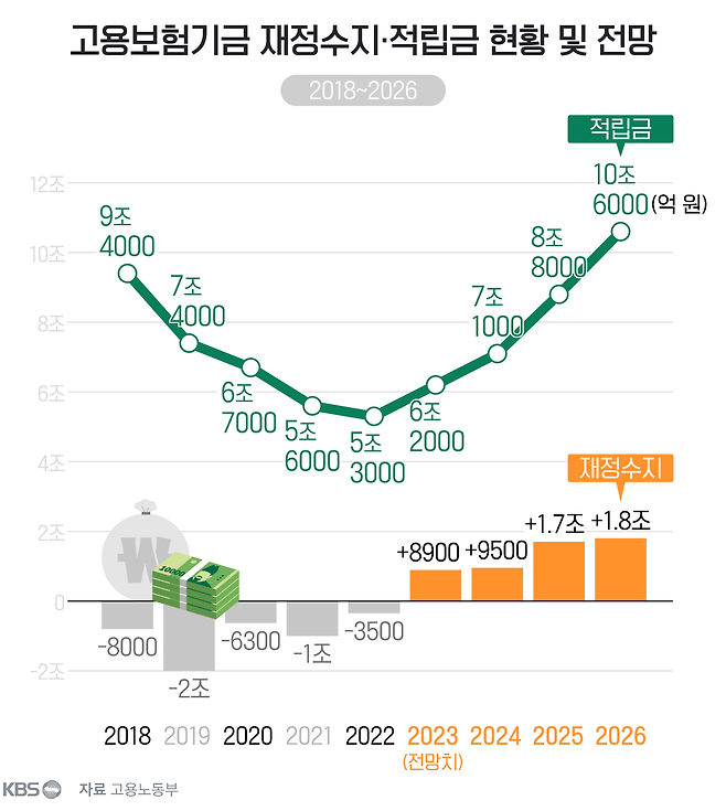 하지만 올해부턴 재정수지가 흑자로 전환돼 2026년까지 꾸준히 개선되는 걸로 전망됐습니다. 이는 지난해 실업급여 보험료율이 0.2% 포인트 올랐고 코로나19 경제위기에서 시행된 한시적 사업들이 종료된데 따른 것으로 풀이됩니다.