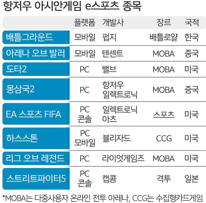 e스포츠가 스포츠로 인정받는 분위기 속에 다양한 종목이 아시안게임에 등장했다. 2018 자카르타-팔렘방 아시안게임에서 롤과 스타2 등이 시범종목으로 채택됐다. 올해 열릴 항저우 대회에서 e스포츠 8개 종목은 정식종목으로 인정받았다. 아시안게임 정식종목으로 선정된 만큼 이번 대회에서 메달을 따는 선수는 다른 종목과 마찬가지로 각종 혜택을 누리게 된다.