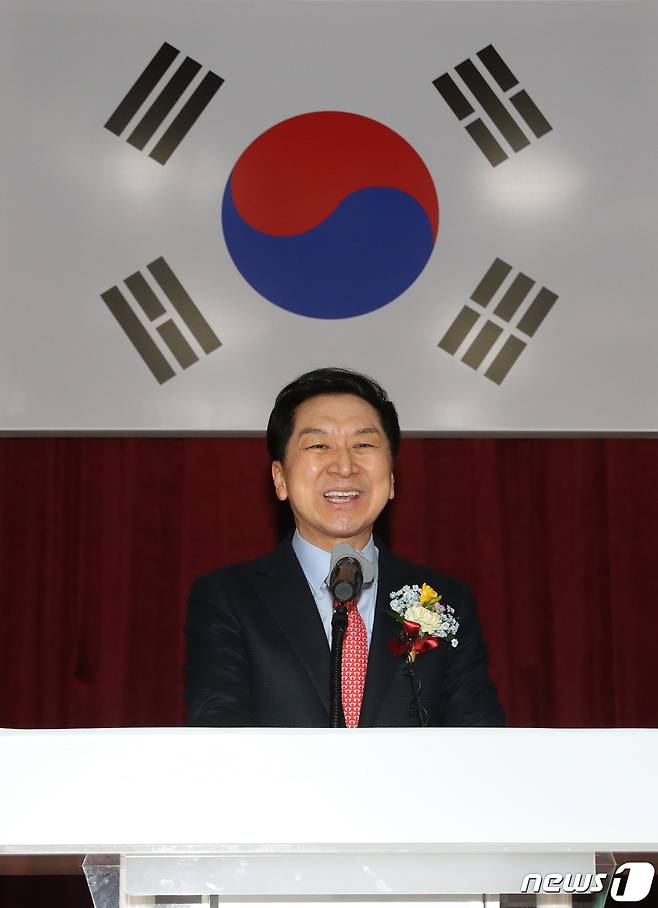 (고양=뉴스1) ,송원영 기자 = 국민의힘 당권 주자인 김기현 의원이 4일 경기 일산서구청에서 열린 고양정 당협의회 신년하례식에서 인사말을 하고 있다. 2023.2.4/뉴스1