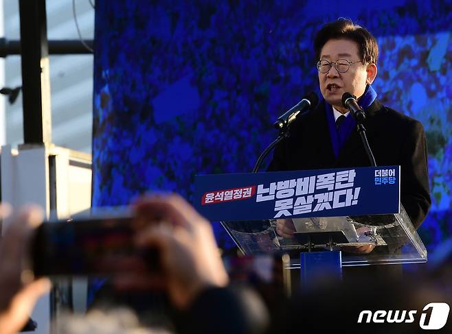 (서울=뉴스1) ,송원영 기자 = 이재명 더불어민주당 대표가 4일 오후 서울 중구 세종대로에서 열린 '윤석열정권 민생파탄·검사독재 규탄대회'에서 발언을 하고 있다. (공동취재) 2023.2.4/뉴스1