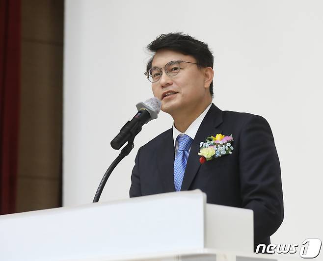 (고양=뉴스1) ,송원영 기자 = 국민의힘 당권 주자인 윤상현 의원이 4일 경기 일산서구청에서 열린 고양정 당협의회 신년하례식에서 인사말을 하고 있다. 2023.2.4/뉴스1