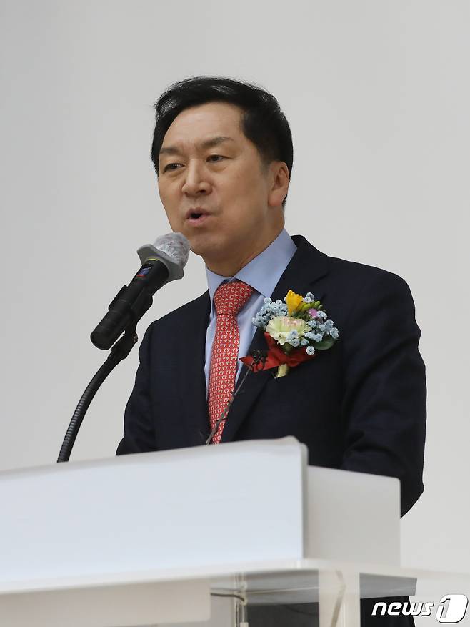 (고양=뉴스1) ,송원영 기자 = 국민의힘 당권 주자인 김기현 의원이 4일 경기 일산서구청에서 열린 고양정 당협의회 신년하례식에서 인사말을 하고 있다. 2023.2.4/뉴스1