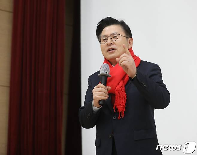 (고양=뉴스1) ,송원영 기자 = 국민의힘 당권 주자인 황교안 전 미래통합당(국민의힘 전신) 대표가 4일 경기 일산서구청에서 열린 고양정 당협의회 신년하례식에서 인사말을 하고 있다. 2023.2.4/뉴스1