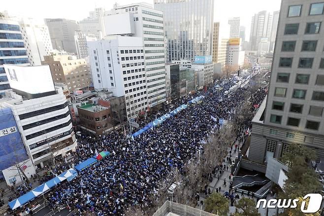 (서울=뉴스1) ,송원영 기자 = 4일 서울 세종대로에서 더불어민주당의 윤석열정권 민생파탄-검사독재 규탄 국민보고대회가 열리고 있다. (공동취재) 2023.2.4/뉴스1