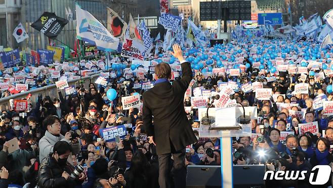(서울=뉴스1) ,송원영 기자 = 이재명 더불어민주당 대표가 4일 서울 중구 숭례문 앞에서 열린 '윤석열 정권 민생파탄 검사독재 규탄대회'에서 연설을 하고 있다. (공동취재) 2023.2.4/뉴스1