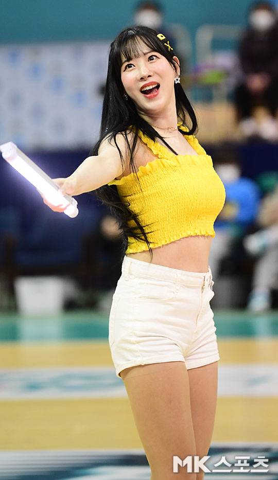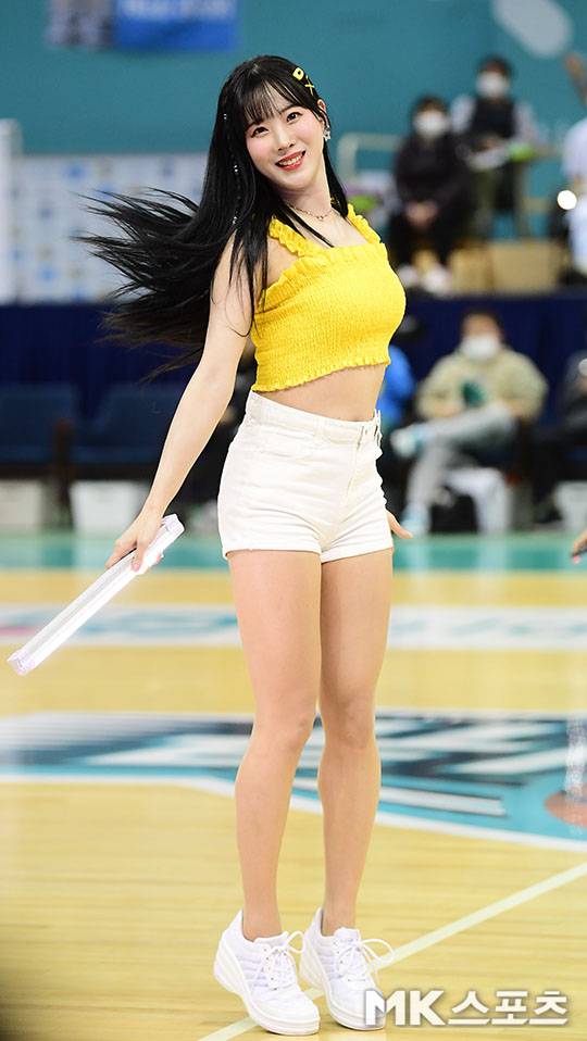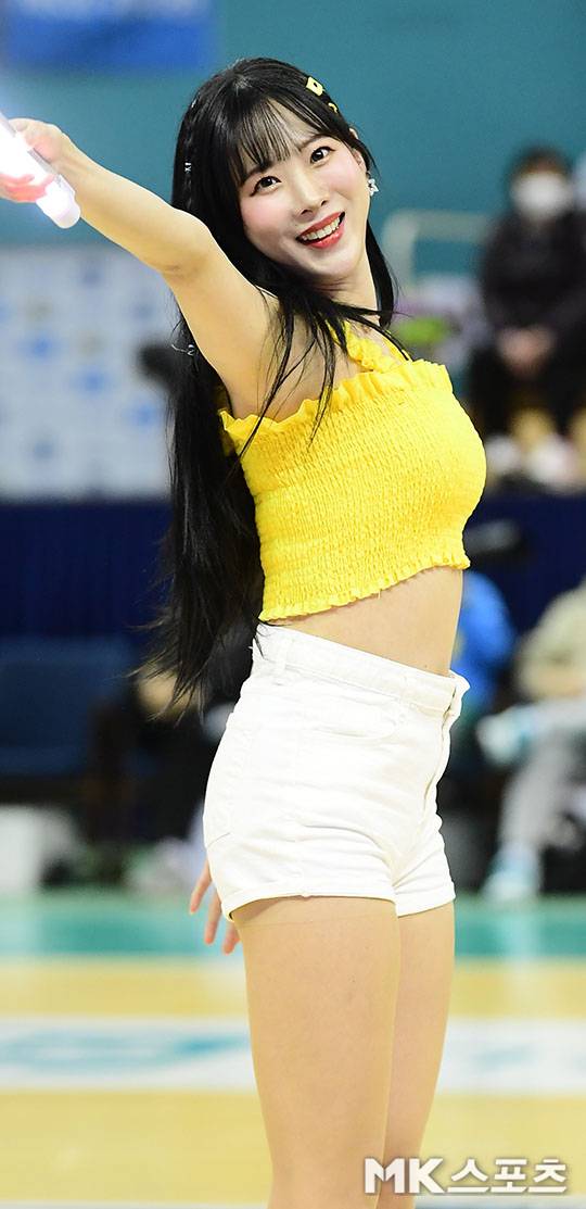 남다른 비율로 살살 녹이는 애교 미소 짓는 치어리더 김한나.