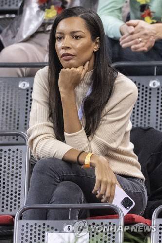 epa10446905 Lilian de Carvalho Monteiro, partner of German former tennis player Boris Becker, looks on during the tennis Davis Cup qualifiers double match for the 2023 group stage between Germany and Switzerland, at the Arena in Trier, Germany, 04 February 2023. EPA/PETER SCHNEIDER