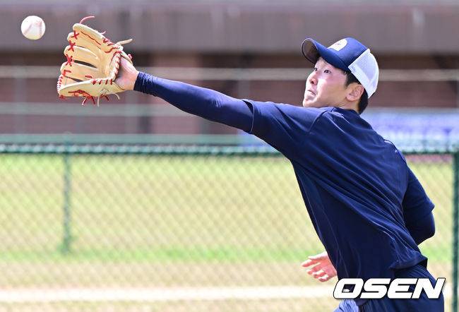 롯데 최준용이 수비 훈련을 하고 있다. 2023.02.04 /ksl0919@osen.co.kr