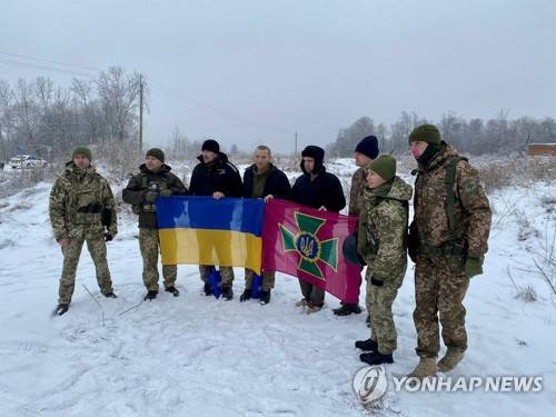 epa10447044 A handout photo made available by the Ministry of Defence of Ukraine on 04 February 2023 shows Ukrainian prisoners of war (POWs) posing for a photograph after a prisoner exchange at an undisclosed location in Ukraine. The Head of the Office of the President of Ukraine, Andriy Yermak, announced on 04 February 2023, that 116 Ukrainian military personnel were freed from Russian captivity and returned to Ukraine in a prisoner exchange. Along with the POWs, the bodies of British volunteers Chris Parry and Andrew Bagshaw, as well of volunteer Evgen Kulyk, had been returned, Yermak added. The Russian Ministry of Defense said in a statement that 63 servicemen of the Armed Forces of the Russian Federation were freed as a result of a 'complex negotiation process'. EPA/MINISTRY OF DEFENCE OF UKRAINE HANDOUT -- BEST QUALITY AVAILABLE -- MANDATORY CREDIT: MINISTRY OF DEFENCE OF UKRAINE -- HANDOUT EDITORIAL USE ONLY/NO SALES