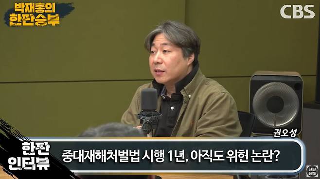 ◇ 박재홍> CBS 라디오 박재홍의 한판승부 함께하고 계십니다. 2부 문을 열었는데요. 2부에서는 지난해 1월 27일부터 시행된 중대재해처벌법에 대해서 얘기를 해 보겠습니다. 시행된 지 1년이 됐는데요. 작년 한 해 644명의 노동자가 산업현장에서 사망을 했습니다. 그러니까 매일 약 2명의 노동자가 집에 가지 못한 것이다라고 볼 수 있는데. 중대재해처벌법 1년 여전히 또 불거지는 실효성 또 혹은 위헌 논란까지 있는데 전문가 모시고 말씀 나눠보겠습니다. 성신여대 법학부의 권오성 교수입니다. 교수님, 어서 오십시오.