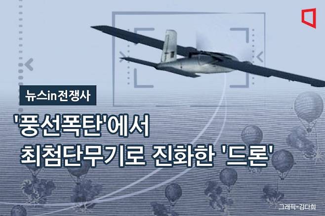 하지만 드론의 사전적 의미를 '지상 공격용 무인기' 전체로 확장한다면, 실제 드론의 역사는 이보다 훨씬 더 길어진다고 합니다. 바로 19세기 중반에 쓰였던 '풍선폭탄(Ballon Bomb)'이 세계 최초의 전쟁용 드론이라는 것이죠. 물론 그 당시부터 극히 최근까지 드론은 지금과 같이 전장을 뒤흔드는 지위의 무기는 아니었습니다.