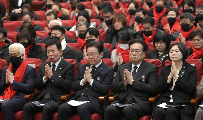이재명 더불어민주당 대표는 "유족에게는 온 세상이 까만 잿빛이지만 대통령과 정부, 여당은 참사 이전과 조금도 달라지지 않았다"며 "추모제에 대통령이 직접 와서 희생자를 추모하고 유족을 위로했으면 어땠을까 생각해본다"고 아쉬움을 드러냈다.
