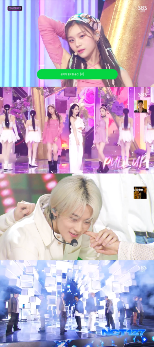 이날 방송에는 다양한 가수들의 컴백 무대가 공개됐다. 지난달 30일 정규 4집 리패키지를 발매하며 컴백한 NCT 127은 타이틀 곡 ‘Ay-Yo’와 수록곡 ‘DJ’(디제이) 두 곡 무대를 펼쳤다.