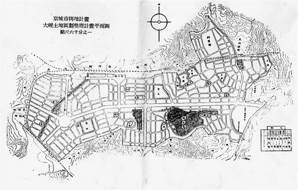 | ▲ 대현 토지구획정리사업 도면(1940) 신촌 골격을 이룬 '대현 토지구획정리사업' 도면. 당시 고양군 연희면을 경성에 편입시켜 시행한 사업이다. |