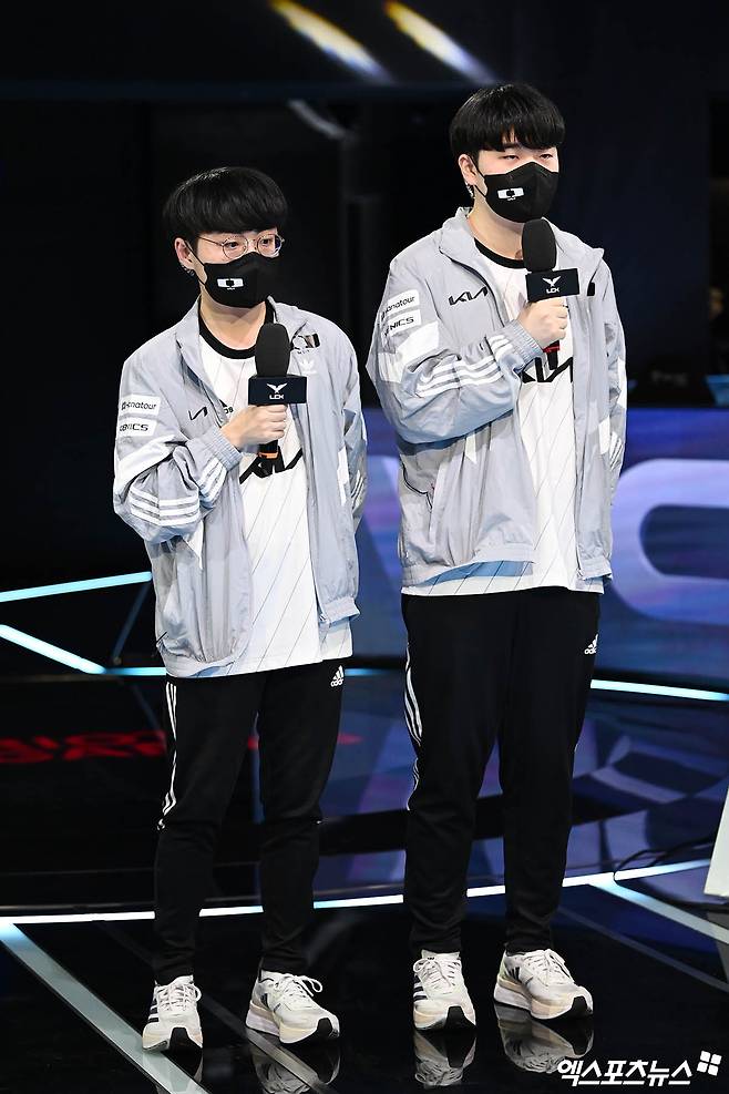 경기 종료 후 POG에 선정된 디플러스 기아 '쇼메이커' 허수와 '캐니언' 김건부가 인터뷰를 하고 있다.