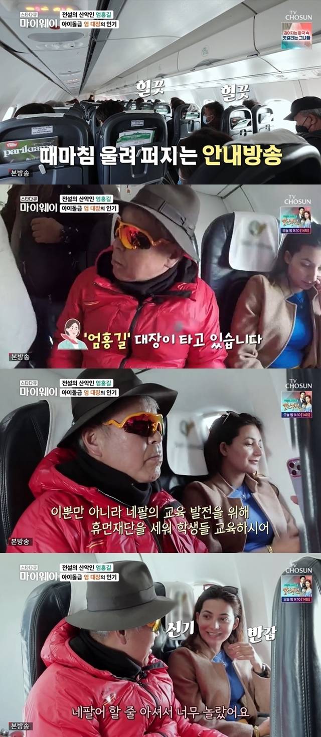 특히 옆자리 여성 승객은 "사진 찍어도 되냐"며 셀카 요청을 했고, 엄홍길은 흔쾌히 승낙했다. 또 여성 승객은 "저는 네팔의 작가다"며 "제 책을 학교 도서관에 주겠다"고 말했다.