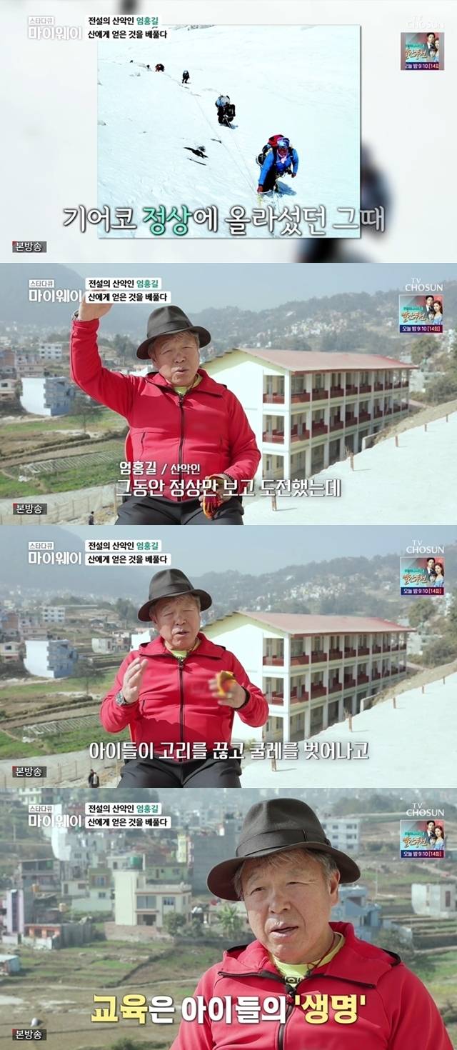 엄홍길은 "네팔에 학교를 세운 이유가 뭐냐"는 물음에 "히말라야 8,000m만 38번 도전했다. 그 과정에서 10명의 동료를 잃었다. 8,000m는 신들의 영역이고 죽음의 지대다. 인간의 의지대로 되는 게 아니다"고 밝혔다.