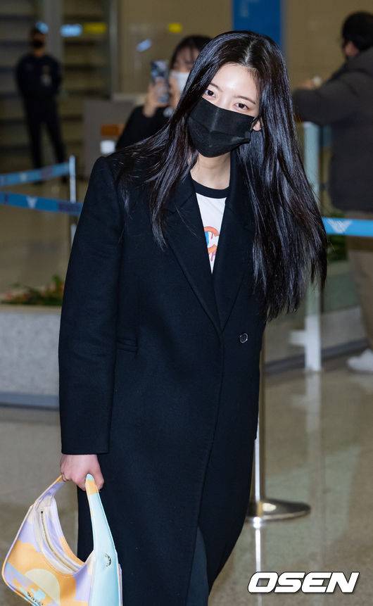 있지 리아가 입국장을 나오며 포즈를 취하고 있다. 2023.02.06 /rumi@osen.co.kr