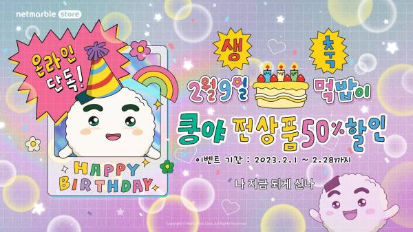 이 회사는 2월 한달 간 온라인스토어에서 대표 캐릭터 주먹밥쿵야의 오는 9일 생일을 맞아 쿵야 IP 전 상품을 50% 할인된 가격으로 판매한다.