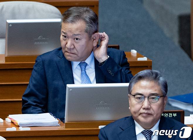 (서울=뉴스1) 이재명 기자 = 이상민 행정안전부 장관이 6일 오후 서울 여의도 국회에서 열린 제403회 국회(임시회) 제2차 본회의 ‘정치·외교·통일·안보’ 분야 대정부 질문에서 잠시 생각에 잠겨 있다. 2023.2.6/뉴스1