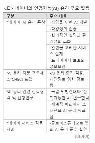 네이버는 ‘AI 윤리 준칙’ 마련 등 관련 선행연구와 서비스 적용에 속도를 내고 있다. 앞서 네이버는 2021년 2월 서울대 AI 정책이니셔티브(SAPI)와 협업해 ‘AI 윤리 준칙’을 발표한 이후, 자체 서비스에 적용을 추진하고 있다.