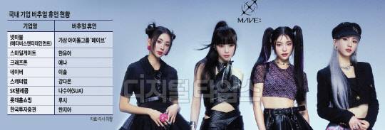 6일 관련 업계에 따르면 넷마블 계열사 메타버스엔터테인먼트는 최근 가상 아이돌 그룹 '메이브(MAVE:)'를 선보였다. 메이브는 시우, 제나, 타이라, 마티 4명으로 구성된 아이돌 그룹이다. 지난달 25일 첫 앨범 '판도라스 박스'와 타이틀곡 '판도라'를 공개했으며 28일에는 MBC '쇼! 음악중심'에서 데뷔 무대를 가졌다. 데뷔 무대에서 메이브는 칼군무의 퍼포먼스와 섬세한 표정 변화로 사람들의 시선을 사로잡았다. 버추얼 휴먼이지만 기대 이상의 퀄리티를 보여줬다는 평가다. 이날 기준 조회수는 유튜브에서 뮤직비디오 919만회, 데뷔 무대 182만회를 기록할 정도다. 실제 무대를 본 이들은 댓글을 통해 "기대 이상이다", "군무 파트에서 각 캐릭터마다 디테일이 미세하게 다르게 설정된 점이 소름 돋는다" 등의 반응을 보이고 있다.