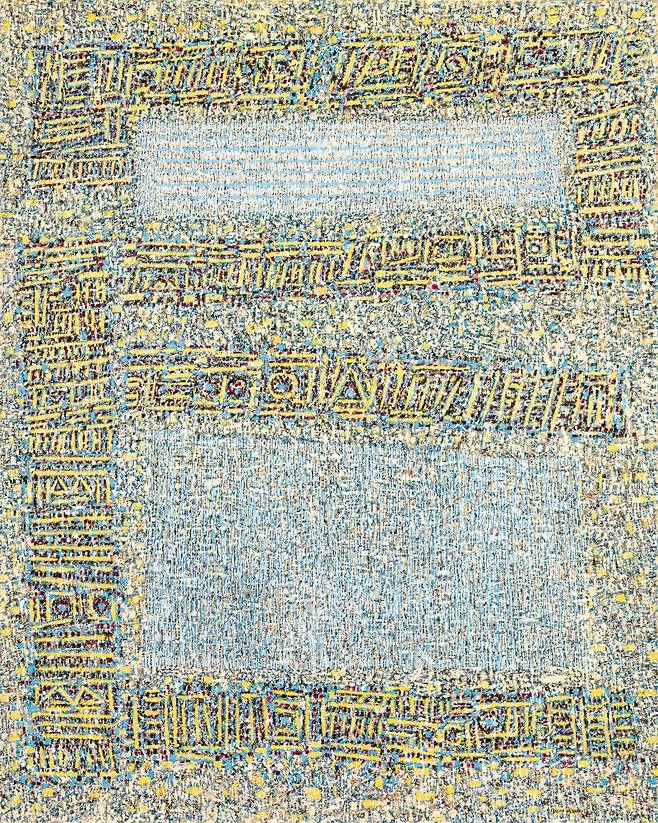 지난해 3월 케이옥션 경매에 출품돼 5억원에 낙찰된 '샘물의 신비(사진)'는 1963년 작품으로 이성자의 전성기에 제작됐다. 1960년대 대표적 작품으로 화면에는 유기적인 선과 면, 색채의 조합이 조밀하게 채워져 있는데, 이는 시공간을 초월해 가장 기본적인 조형 요소인 점, 선, 면을 이용해 조국의 땅, 그곳에 있는 가족과 그들에 대한 그리움, 여성으로 자긍심을 추상 작품으로 담아낸 것으로 해석할 수 있다.