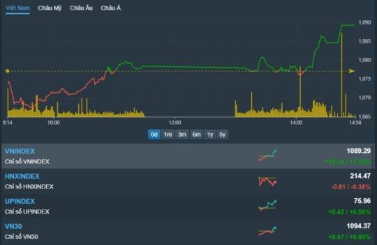 벤치마크 VN지수는 전 거래일에 비해 12.14p(1.13%) 급등한 1,089.29p를 기록했고, 190개 종목이 상승, 139개 종목이 하락했다.
