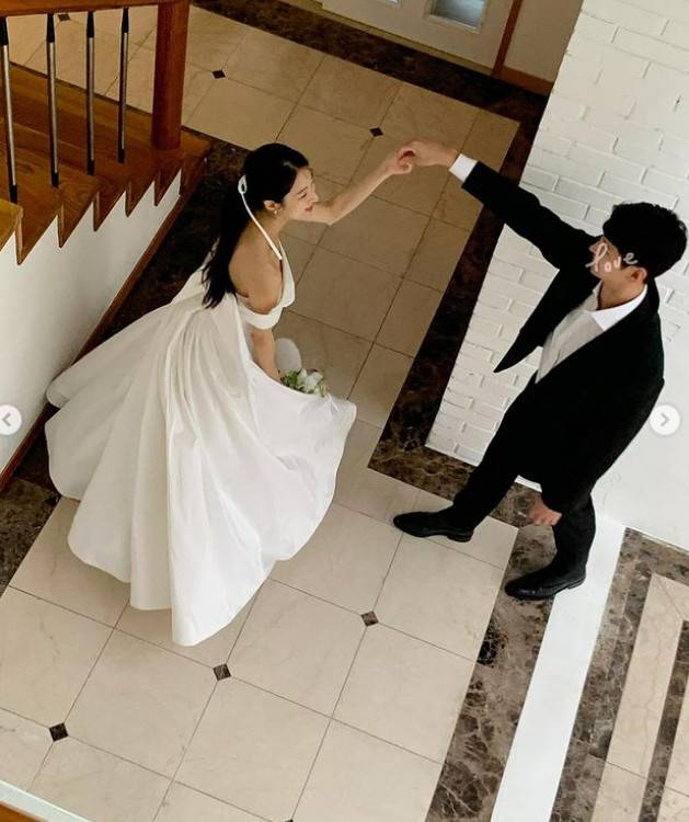 공개된 사진 속 박민하는 어깨를 드러낸 순백의 드레스를 입고 있고, 훤칠한 키에 높은 콧대가 인상적인 예비신랑은 뚜렷하게 얼굴을 드러내진 않았지만 훈훈한 비주얼로 눈길을 끈다.