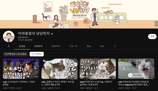 2위는 구독자 35만 명, 누적 조회 수 8500만 회를 보유한 채널 '미야옹철의 냥냥펀치'다. 반려묘 행동 전문 수의사 김명철이 운영하는 채널이다. '인기 반려묘 이름', '집사의 삶을 향상시키는 꿀템'과 같은 친근한 소재부터 '아플 때 보이는 행동', '비만 예방과 관리'와 같은 전문적 내용까지 폭넓은 콘텐츠를 제공한다. 채널 내에서 '수의사들이 두려워하는 고양이 3대장', '최악의 고양이 보호자 Top 5' 등 동물병원 진료실 안팎의 '썰'을 다룬 영상들이 가장 큰 호응을 얻고 있다. 인기 고양이 유튜브 채널 속 주인공들의 행동을 분석해보는 '고양이 통역사' 시리즈도 높은 조회 수를 올리는 인기 콘텐츠로 꼽힌다.
