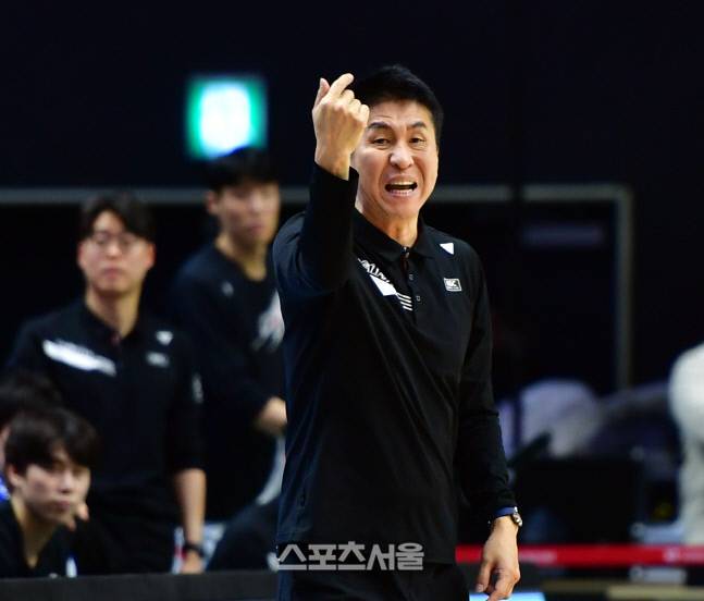 KGC 김상식 감독이 6일 수원KT아레나에서 열린 2022-2023프로농구 수원KT와 안양KGC의 경기에서 4쿼터 막판 선수들을 독려하고 있다. 2023.2.6.