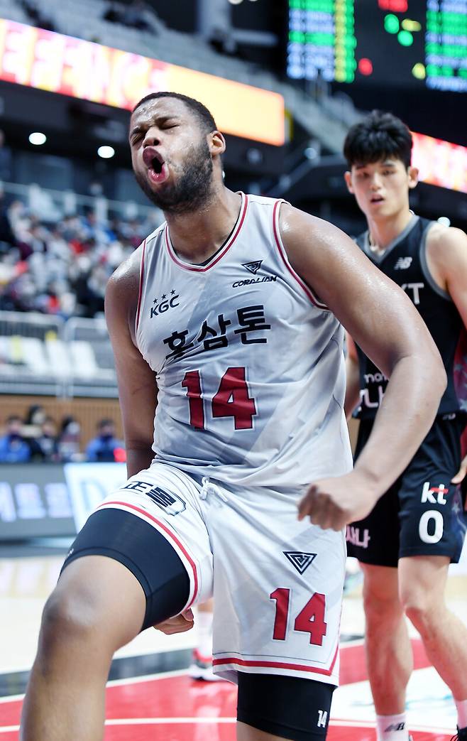 KGC가 오마리 스펠맨(203cm, F)의 폭발력으로 KT를 잡고 5연승을 내달렸다.