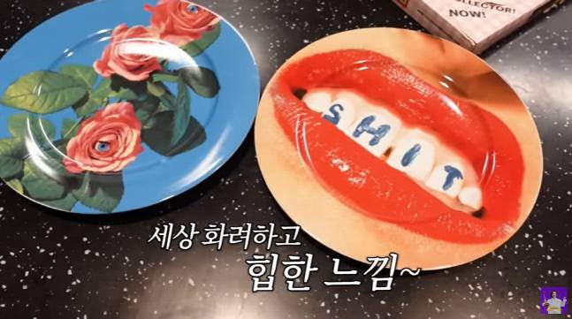 꽃과 입술이 그려진 화려하고 힙한 그릇에 김숙은 "'언니쓰' 할 때 선물을 해줬다. 아껴서 쓰고 있다"고 이야기했다.
