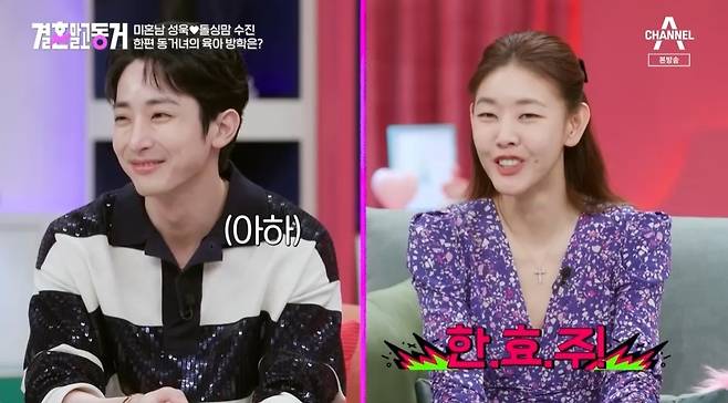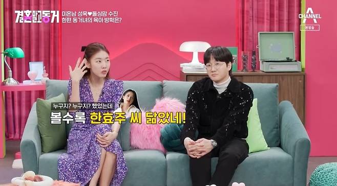 '결혼 말고 동거' MC 한혜진이 동거녀 배수진의 닮은꼴을 언급했다.
