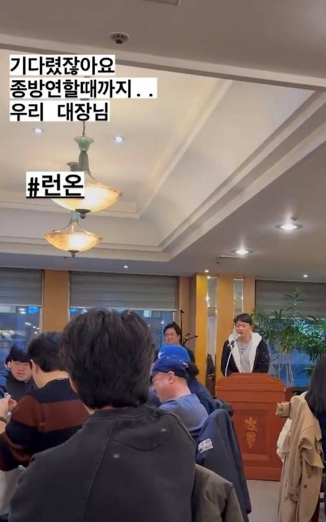 방송을 완전히 끝낸 뒤, 그것을 기념하고 축하하기 위해 여는 잔치인 '종방연'. 그러나 아쉽게도 드라마 〈런 온〉은 코로나 시기로 인해 종방연을 하지 못했다. 그런데 최근 트위터를 뜨겁게 달군 검색어인 '런 온 종방연'! 예상치 못하게도 드라마 종영 2년 만에 〈런 온〉의 종방연이 열린 것이다. 공개된 사진에서는 드라마의 주역인 신세경, 임시완, 수영을 비롯해 이정하(김우식 역), 류아벨(기은비 역) 등 조연 배우들의 모습도 발견할 수 있다.