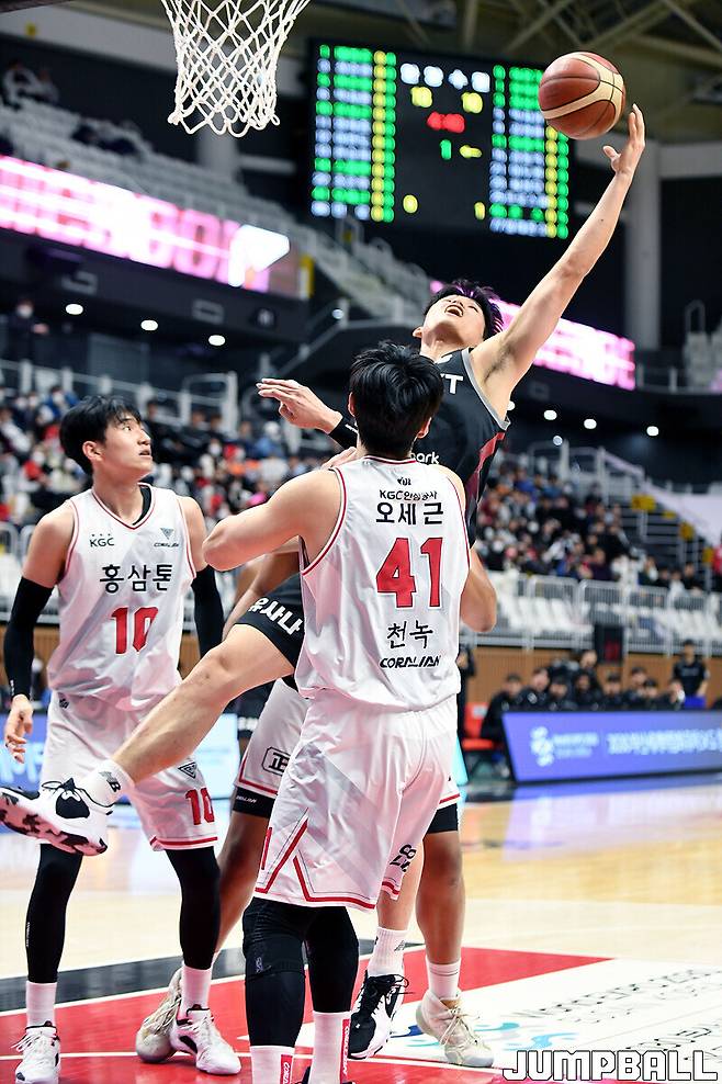 안양 KGC는 6일 수원 KT 소닉붐 아레나에서 열린 2022-2023 SKT 에이닷 프로농구 수원 KT와의 경기에서 87-84로 승리했다.